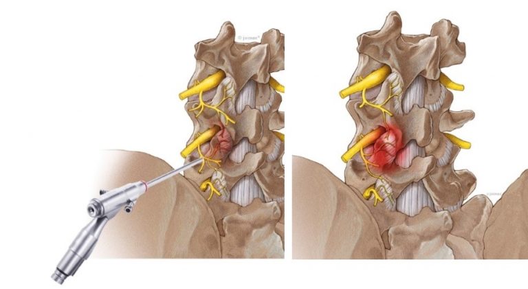 Ambulantes minimalinvasives, bandscheibenerhaltendes Verfahren bei schmerzhaften Bandscheibenvorfällen oder Vorwölbungen ohne Vollnarkose. Durch die spezielle Form der Sonde sind nahezu alle Vorwölbungen erreichbar. Durch Hitzeeinwirkung wird eine Schrumpfung des Bandscheibengewebes und eine Verödung der schmerzleitenden Nervenfasern erzielt. Zudem kann über den gleichen Sondenzugang mittels Spezialinstrumentarium eine direkte Volumenreduktion und damit Dekompression der eingeengten Nerven erreicht werden.