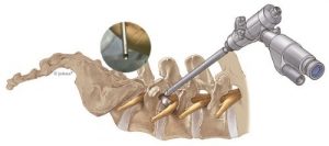 Durch einen ca. 2 cm großen Schnitt, der seitlich der Wirbelsäule liegt, erfolgt das schrittweise Eröffnen des Nervenausgangs des betroffenen Wirbels. So können Einengungen sog. Stenosen durch Bandscheibenvorfälle und abnützungsbedingte foraminale Nervenausgangsstenose beseitigt werden. Auch Spinalkanalstenosen durch Bandscheibenprotrusionen erlaubt diese Technik zu behandeln. Der Vorteil liegt in einer minimalen Invasivität (2 cm Hautschnitt ca. 10 cm lateral der Wirbelsäule) und fehlender Inzision des Spinalkanales (kein Postnukleotomiesyndrom, keine Duravernarbungen).